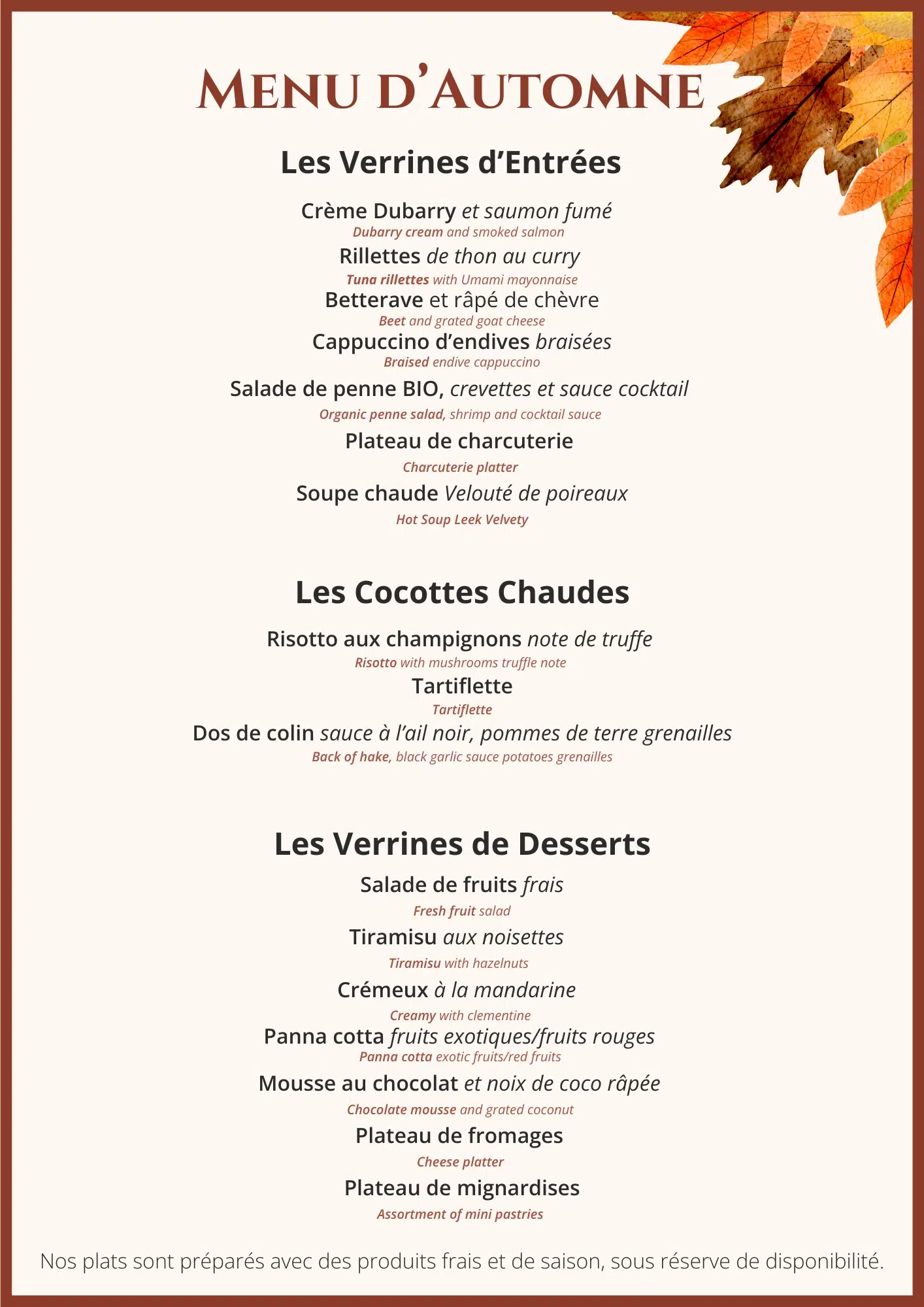 Un Concept de restaurant innovant (buffets en libre-service) qui offre une véritable proposition expérientielle, dans la tendance culinaire des plats traditionnels revisités, servis dans des cocottes et des verrines.